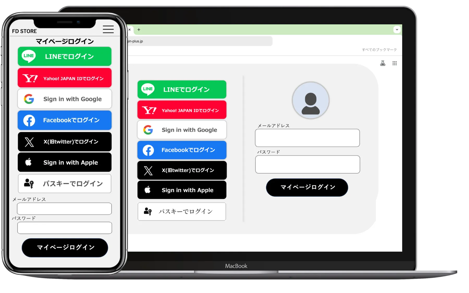 ソーシャルログインに加えて強固なセキュリティが特徴の認証方式も同時に対応可能です。